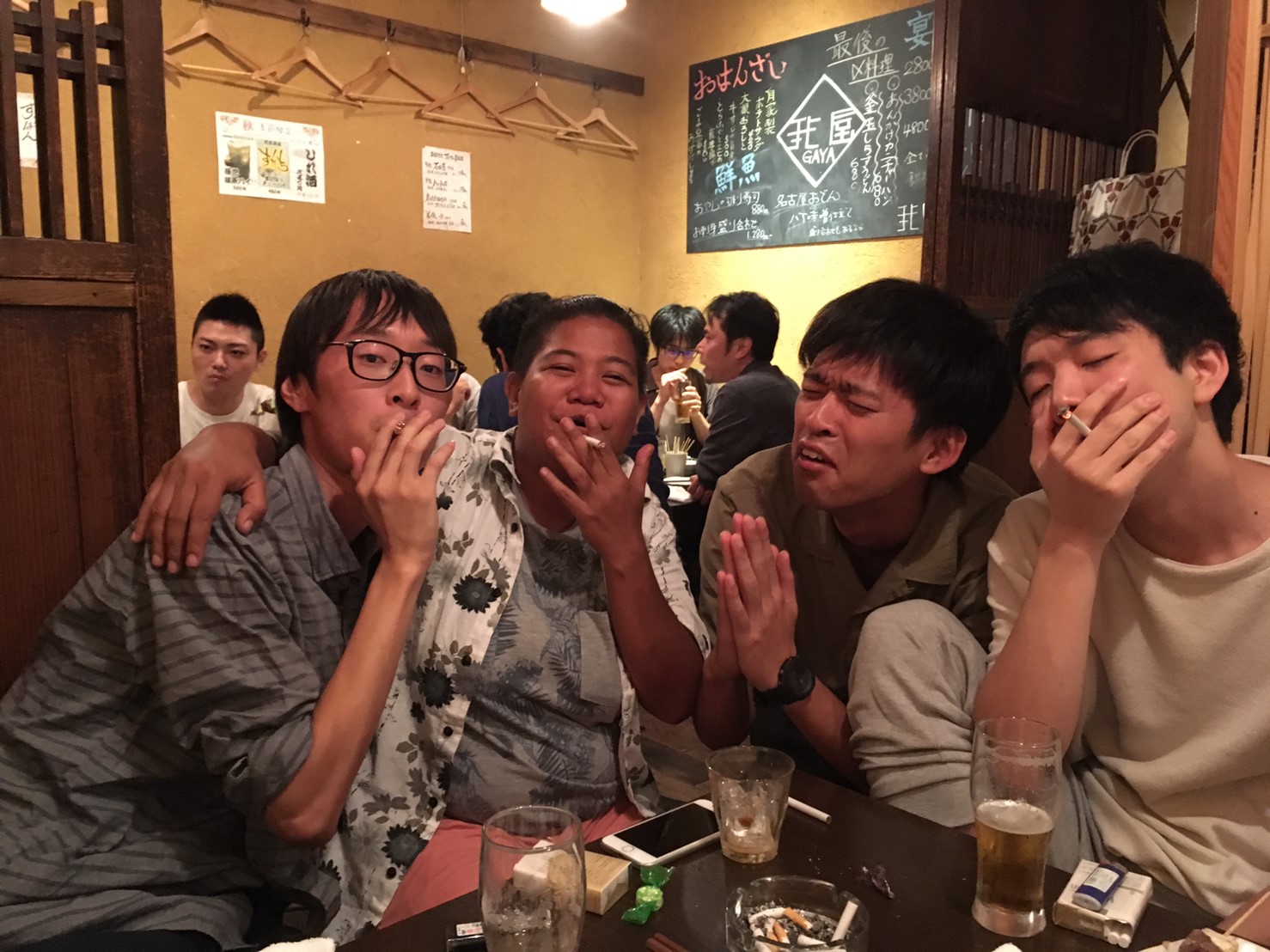 ![]() その後の一服で絆を確かめ合いました(1名除く) |