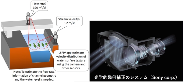 📝 洪水流の可視化計測する際に、撮影地点から遠い箇所の解像度が低くなるため測れなくなる.この欠点を光学的工夫により緩和して、より広い条件で洪水流の可視化計測ができるようにする
