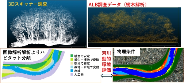 📐 航空レーザ測量データ・UAV(無人機)の調査データの普及に伴い、本研究室では河道管理の高度化・効率化に関する技術の開発を行っている