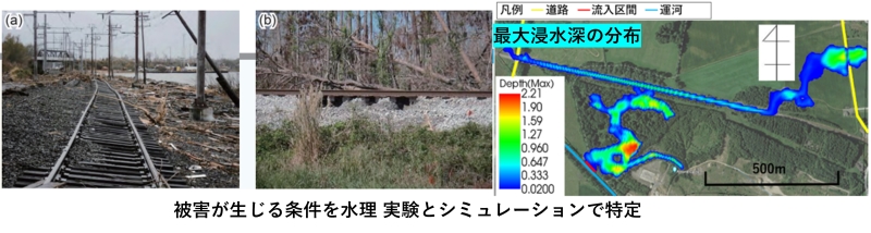 📕 氾濫解析(i.e. Nays2DFlood)や地理情報の分析から,洪水流による鉄道・道路の盛土等の構造物の被害発生条件を特定する
